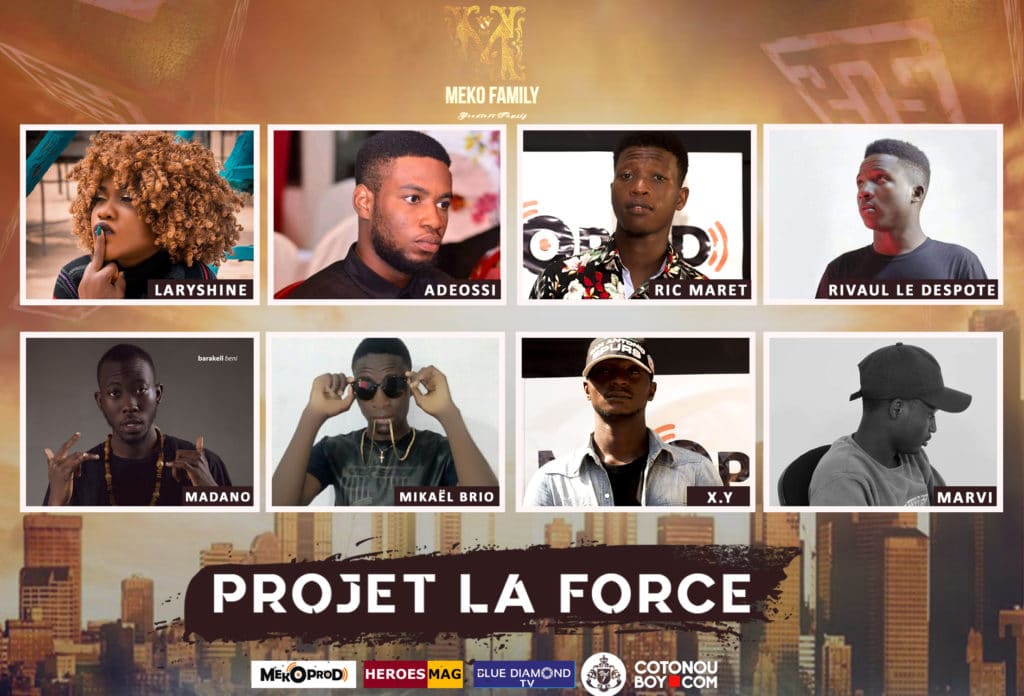 Dans le cadre du projet ‘’La Force’’ de Meko Family , nous avions lancé un appel à candidature. Vous étiez nombreux à avoir répondu à l’appel et à nous avoir fait parvenir vos singles. Cela dit, nous n’avons retenu que huit candidats dans le lot.